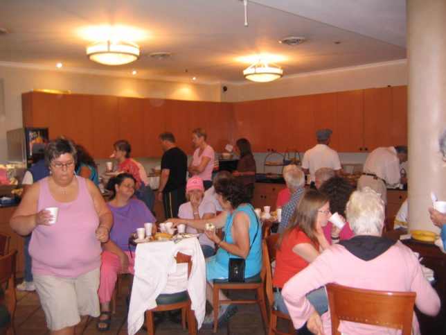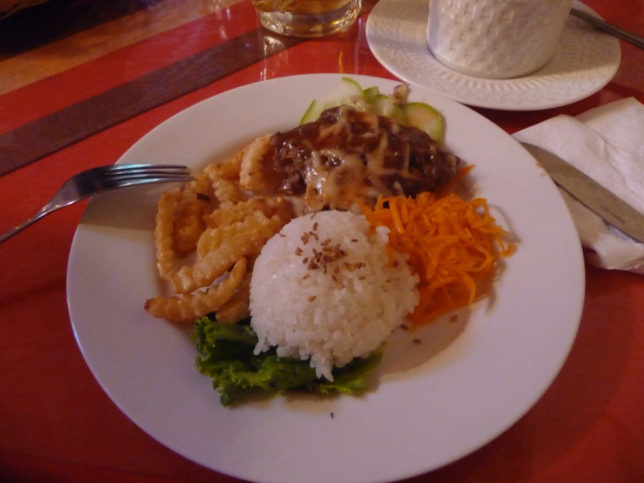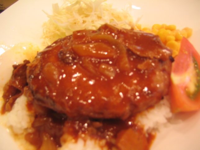 みんなトースト食べながらうんざりしている感じの横で、僕は朝からロコモコを