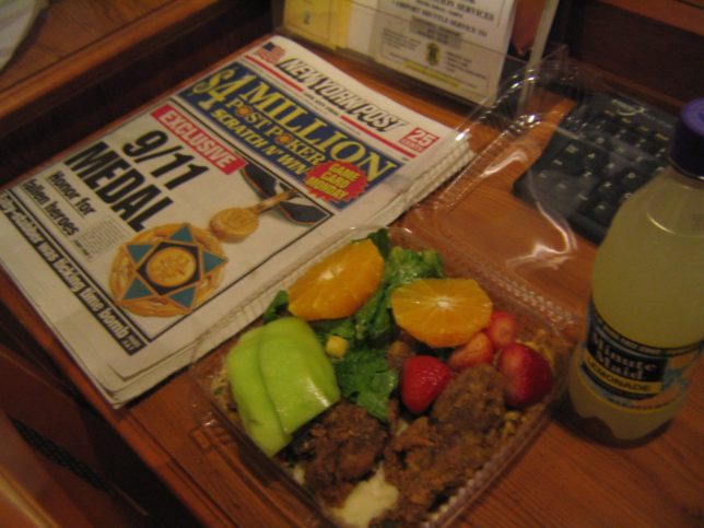 もう部屋に入った時はヘトヘトで、ぐったりしてた。でも晩御飯だけは食べなと思って、吉野家やハンバーガー屋を見つけたけど、どこももう閉まってて(PM11:00)小さいスーパーみたいなとこでジュースとNEWSPEPER(なんで?)とグラムで計って買うバイキングで持ち帰りした。(15ドル)