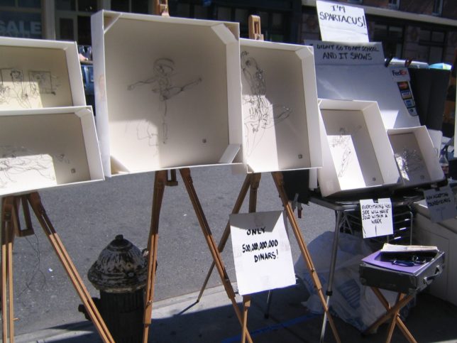 針金で人を作ってるやつがレベル高かった。NYCを歩く人たちはみんな片手に水を持ってた。僕も水を買ってスタイリッシュに歩くことにした。そのペットボトルがすごい面白くて、日本でいう食器用洗剤の入れもんと同じクチをしてる。