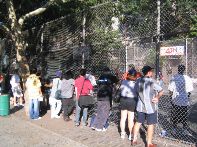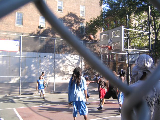 地上に出たらニューヨークのリアルな街並みという感じ。ショップがあったり、バスケのコートがあったり、日差しは暑いのに風が冷たくて気持ちよかった。会社の上司にメールした。