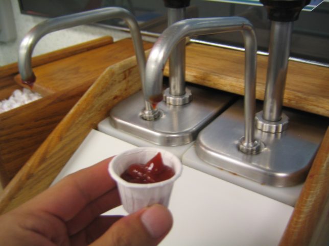 でもケチャップだけはアメリカンやった!カップ渡されて自分で好きなだけ入れるスタイル。
