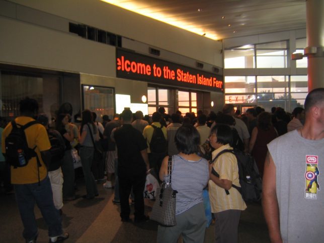それからベタやけど自由の女神を拝みに行くことに。地下鉄でソウスフェリー駅まで行って、そこからなぜか皆ダッシュ!!とりあえず自分もダッシュ!フェリーに乗った。(無料!)最後の1本とかやったんかな?下調べもしてないのにすんなり乗れて良かったわ。。