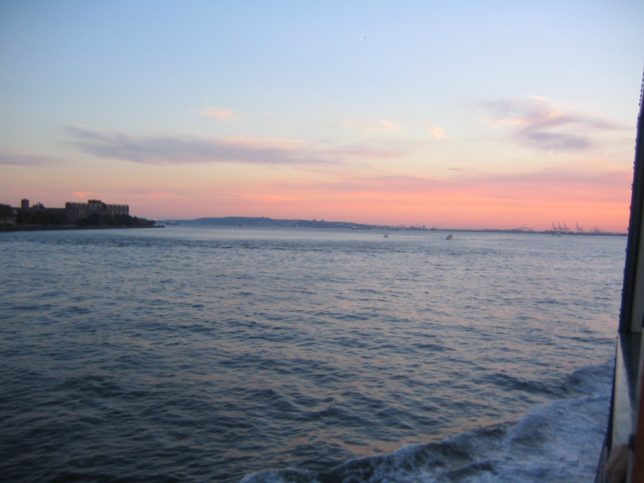 自由の女神のことを聞くと、ちょうど逆サイドで凛々しくそびえ立ってたという。マジかよ。帰りのフェリーを待っている間、色々話をした。