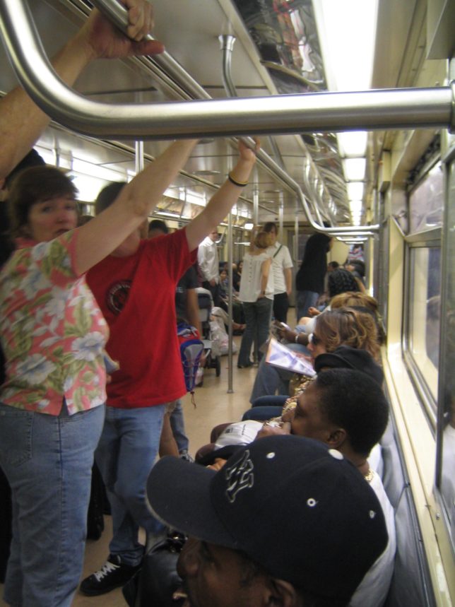 電車の中は黒人でいっぱいやった。中では見知らぬ人同士が気さくに喋ってる場面も。ソーホーという街を目指し、ここが一番近いかなって駅で降りた。