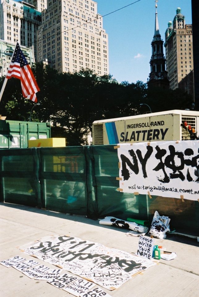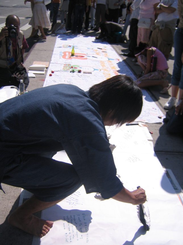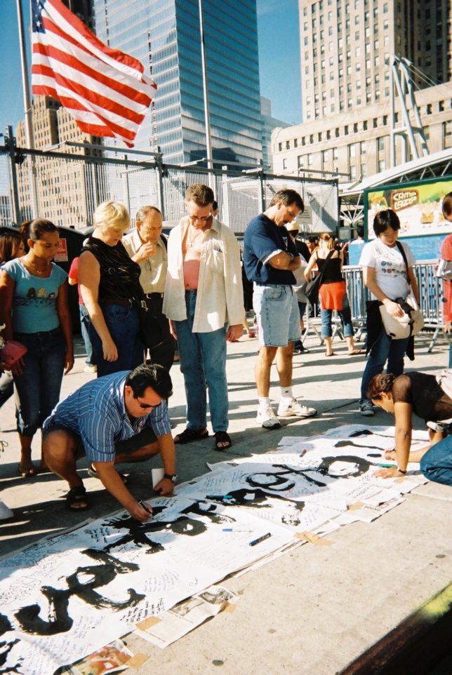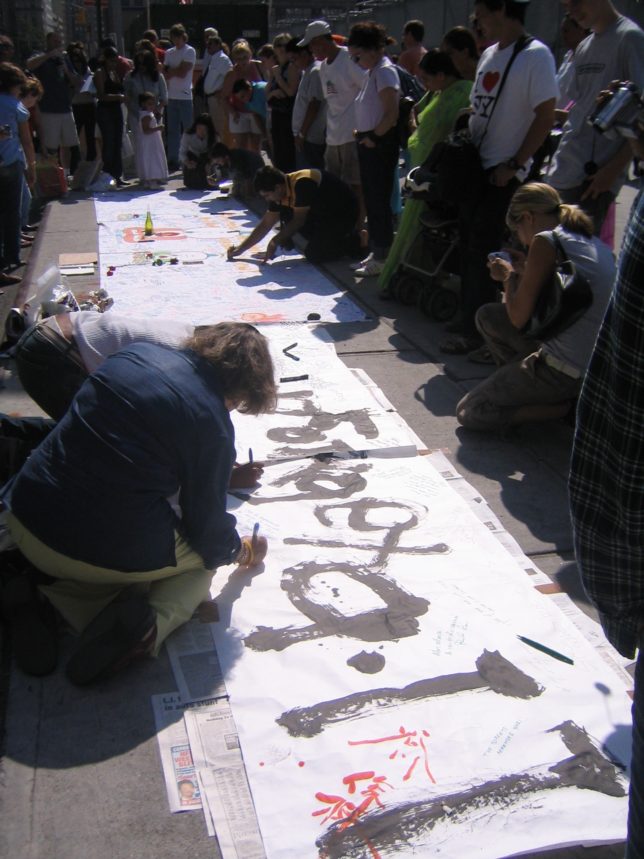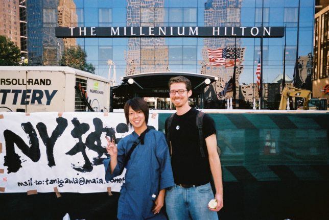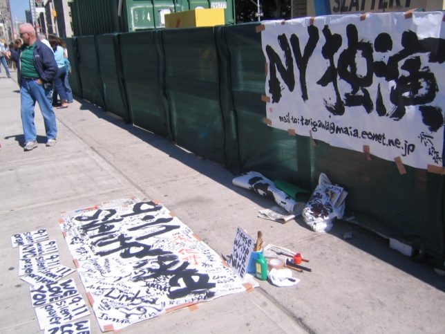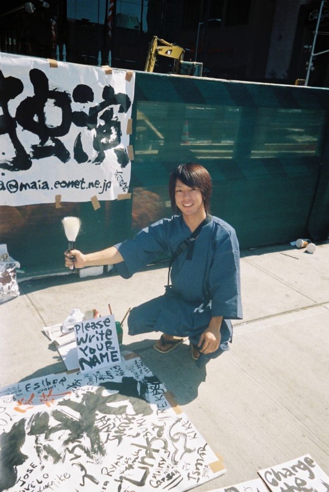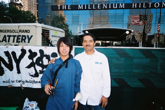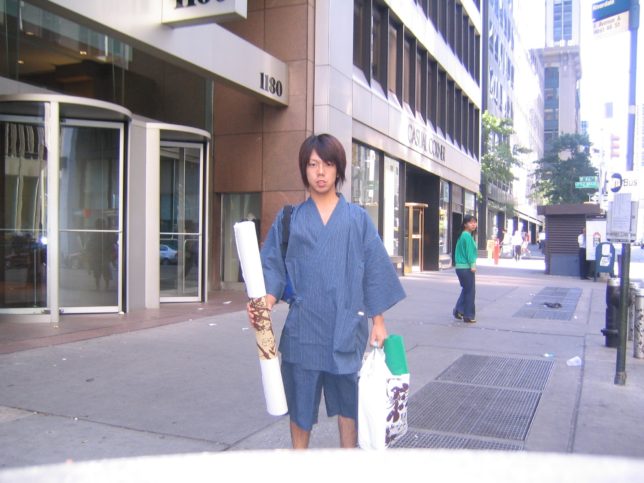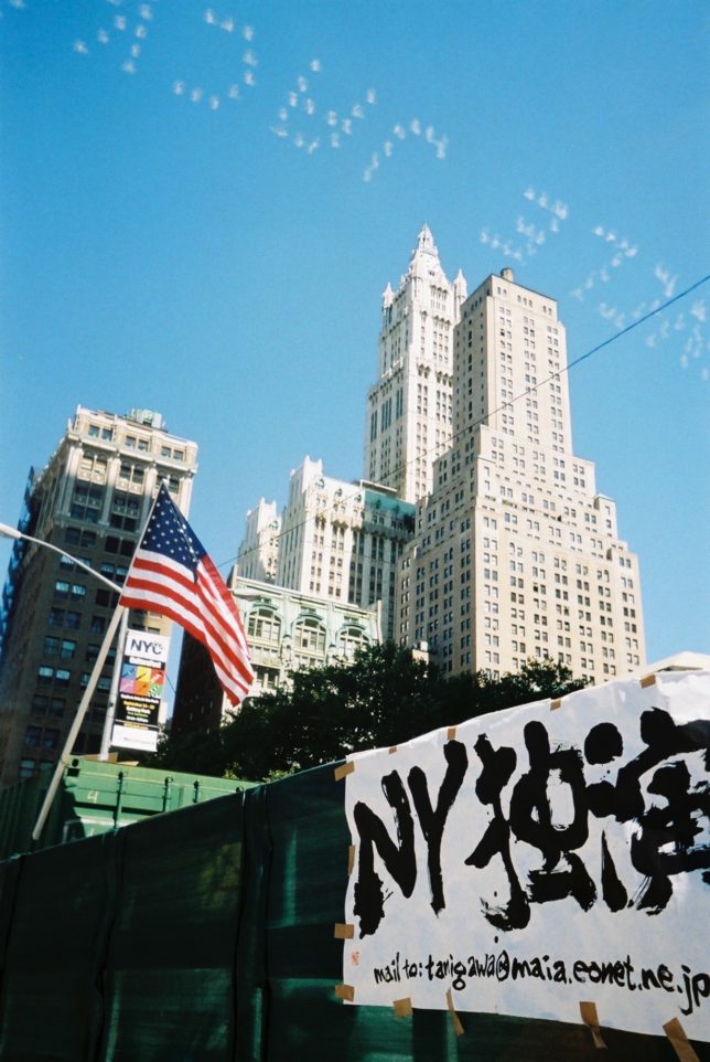 謙遜抜きで全く喋れない英語力、出発2日前に取った航空チケット、ホテルも予約しないで両手に太い筆と丸めた大きな和紙。「あの場所に行って、自分にできることを何かひとつでもやりたい」とノースウエストの飛行機に乗り込んだ。