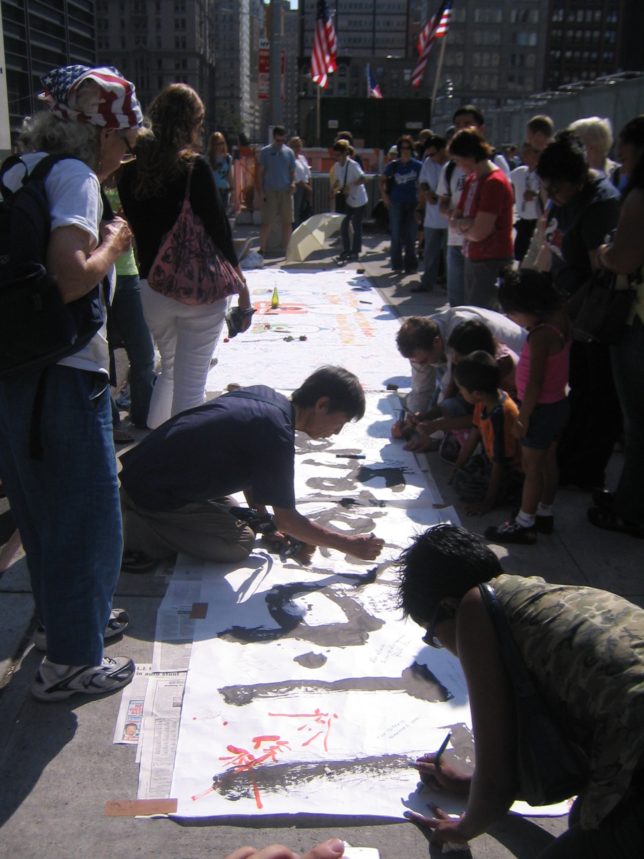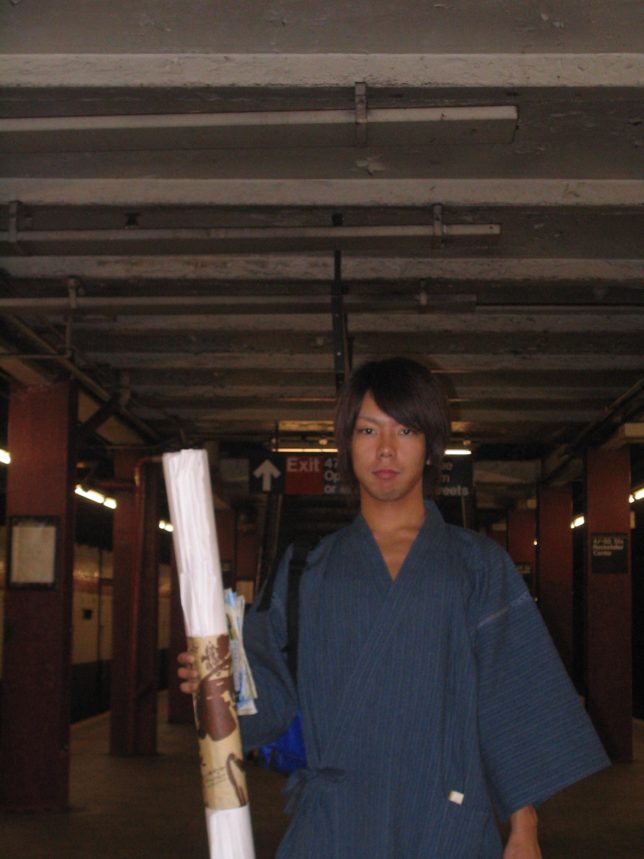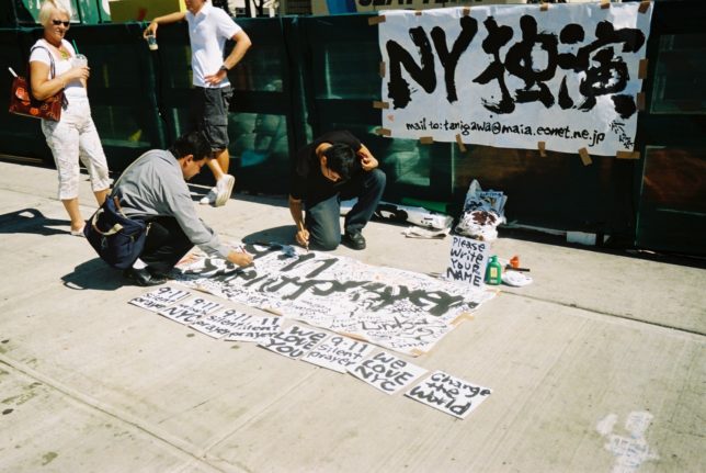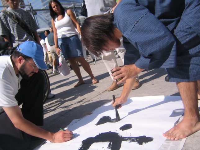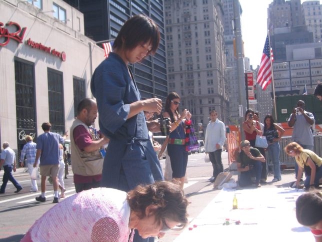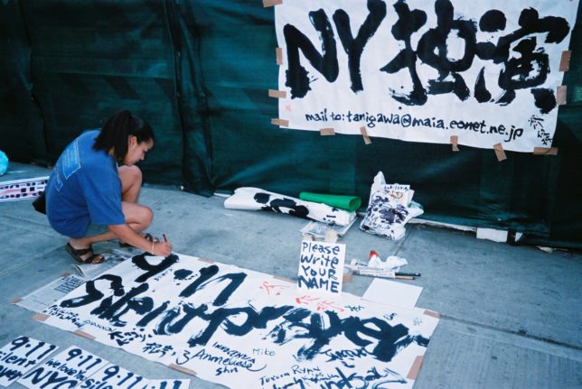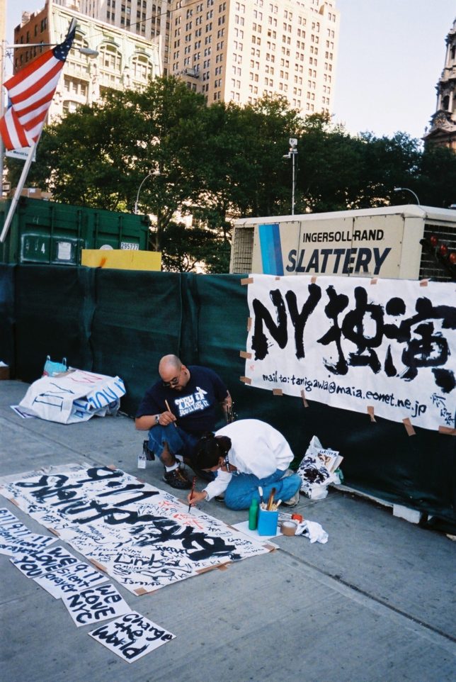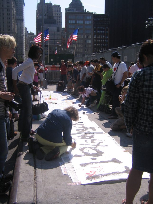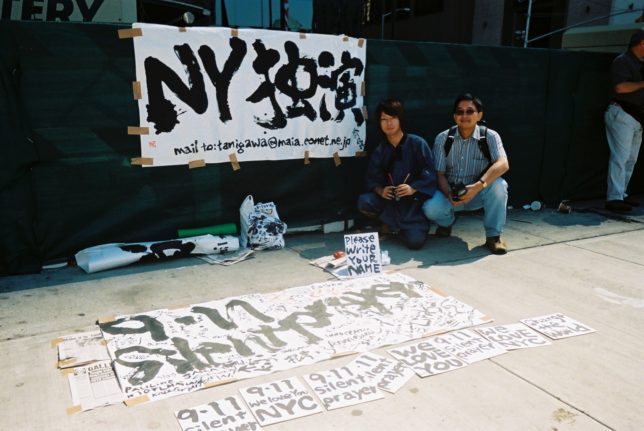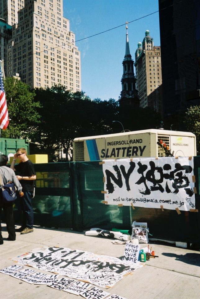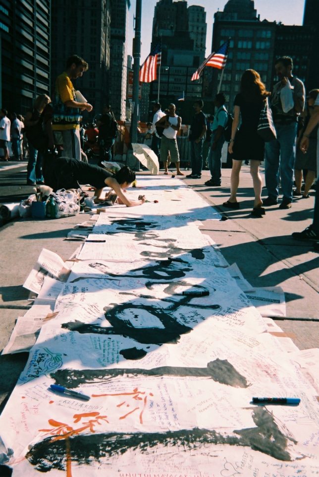謙遜抜きで全く喋れない英語力、出発2日前に取った航空チケット、ホテルも予約しないで両手に太い筆と丸めた大きな和紙。「あの場所に行って、自分にできることを何かひとつでもやりたい」とノースウエストの飛行機に乗り込んだ。