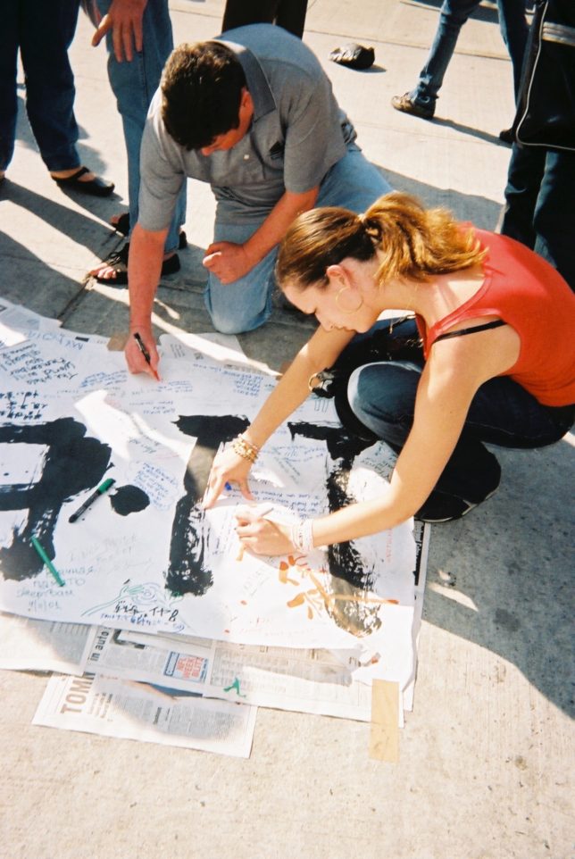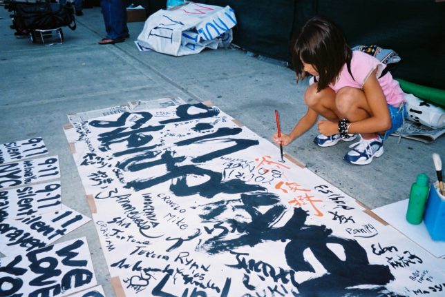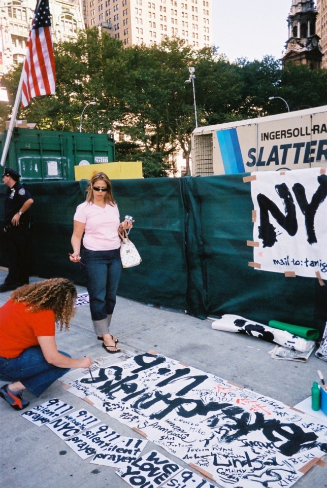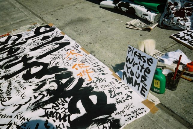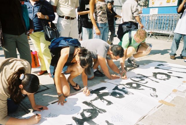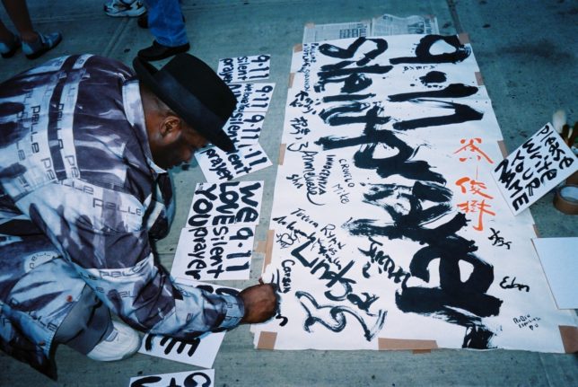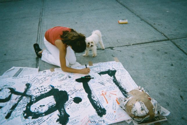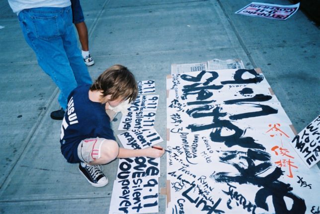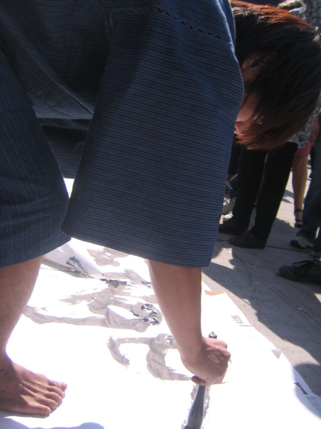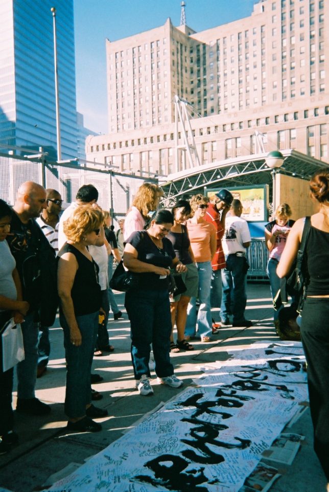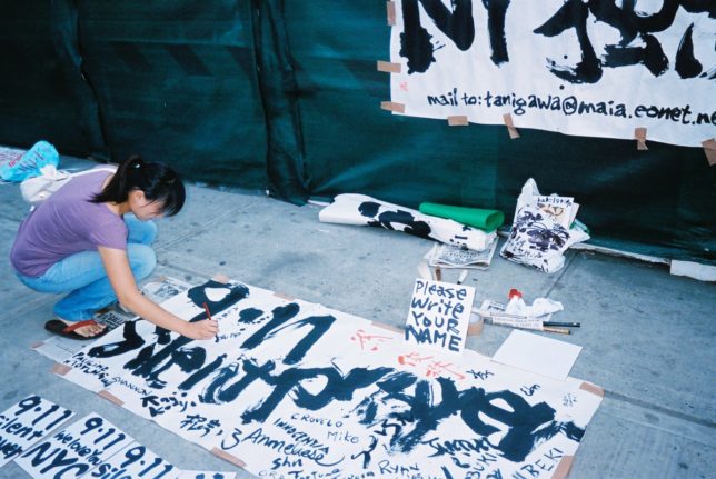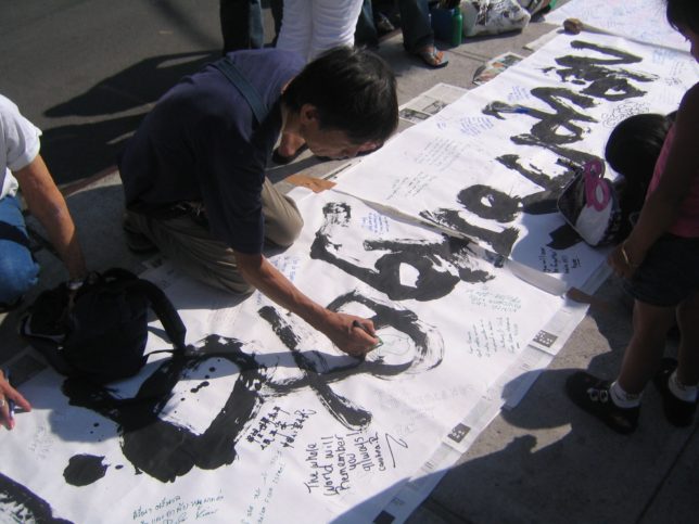謙遜抜きで全く喋れない英語力、出発2日前に取った航空チケット、ホテルも予約しないで両手に太い筆と丸めた大きな和紙。「あの場所に行って、自分にできることを何かひとつでもやりたい」とノースウエストの飛行機に乗り込んだ。