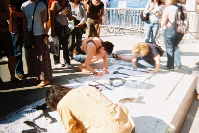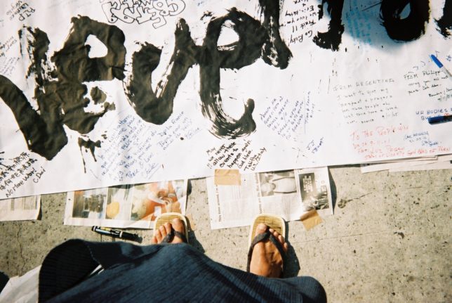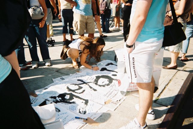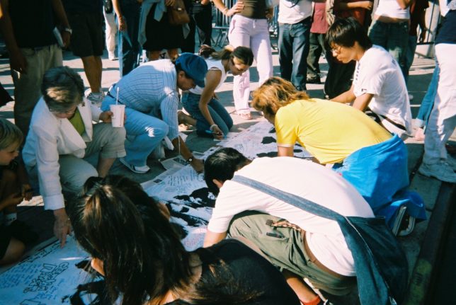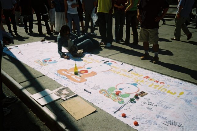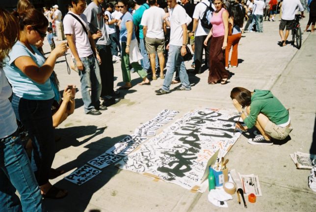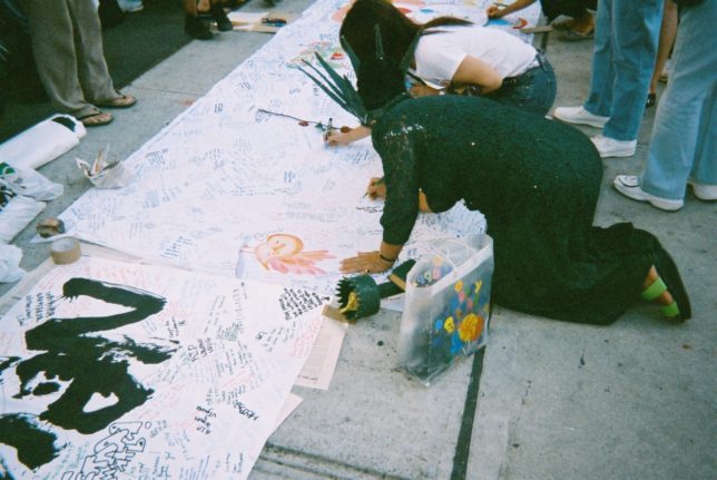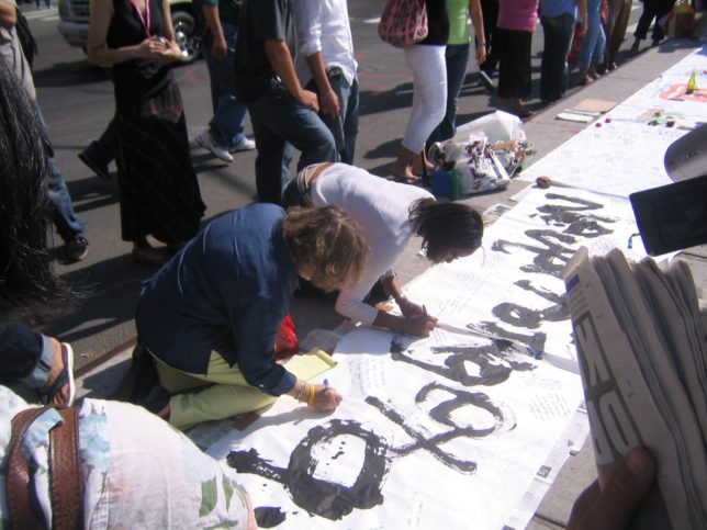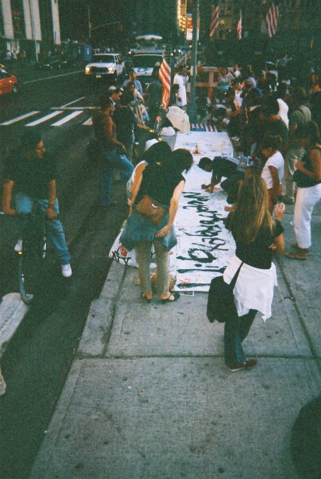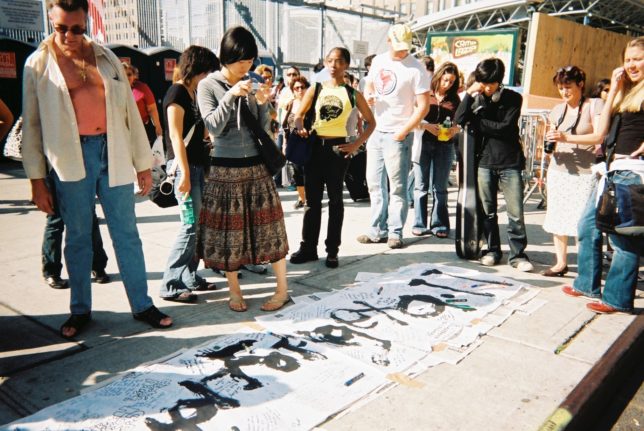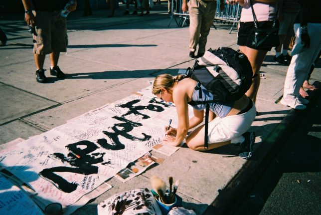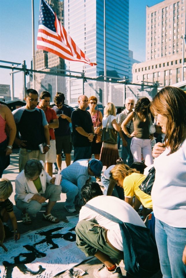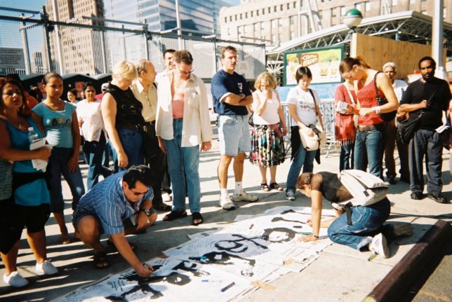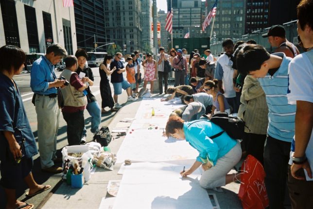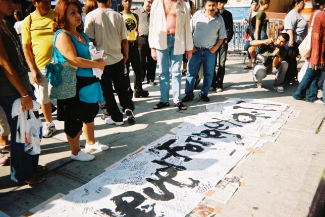 謙遜抜きで全く喋れない英語力、出発2日前に取った航空チケット、ホテルも予約しないで両手に太い筆と丸めた大きな和紙。「あの場所に行って、自分にできることを何かひとつでもやりたい」とノースウエストの飛行機に乗り込んだ。