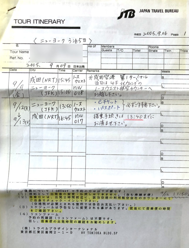 当時海外のチケット取り方わからんかったから、そこらへんのJTBで手配してもらった。