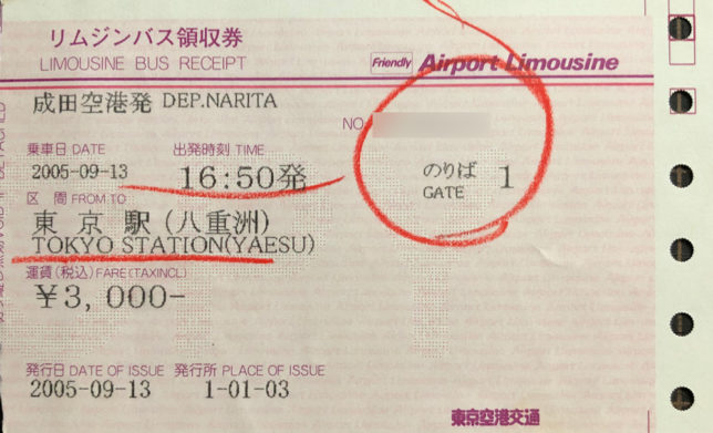 これは帰りのチケットやけど東京駅から成田空港までのリムジンバス3,000円。たか。
