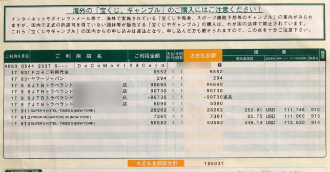 くらいの記憶だったけど、15年後のこれ書いてる今改めて見ると、1泊目28,262円で2泊目+3泊目の合計が50,582円か。3泊で78,844円はまあまあしたな〜。