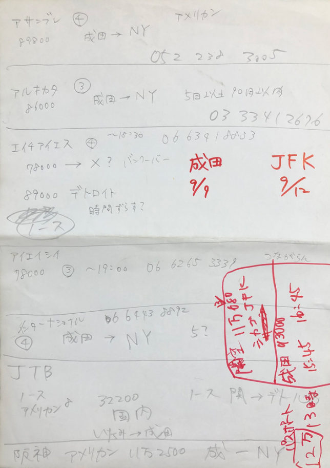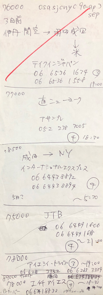 関空から乗り継ぎで行くか、夜行バスで東京まで行って直通で行くかで迷ってた形跡。