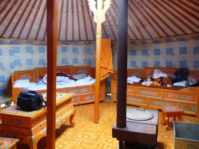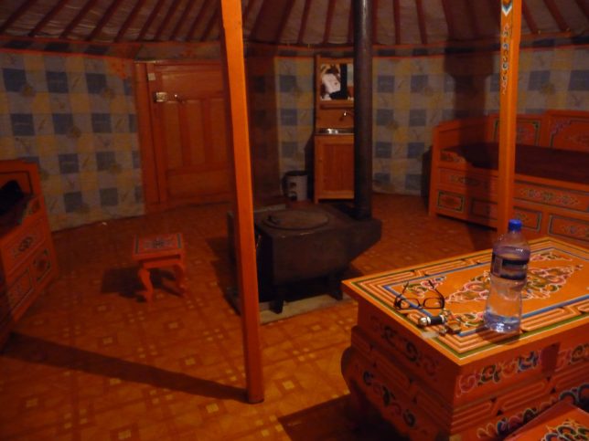 ゲルの中はこんな感じ。4人部屋を貸切やった。