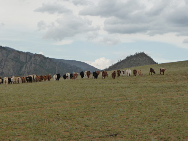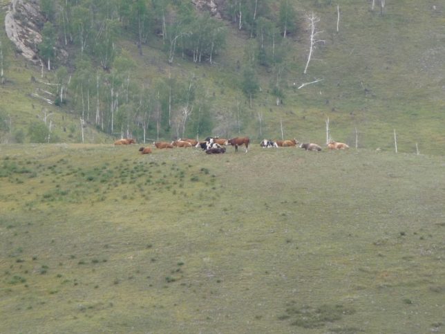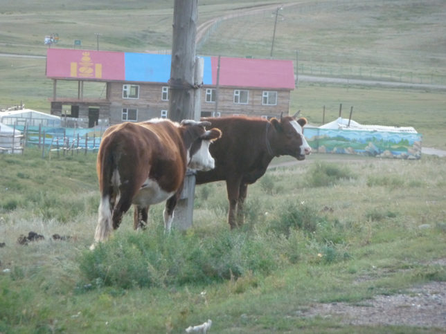 遠くに牛が見えた。わりと起伏がある地形で、思い描いてたモンゴルのイメージ、スーホーの白い馬感とはちょっと違った。