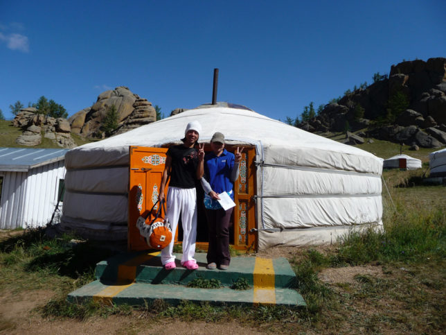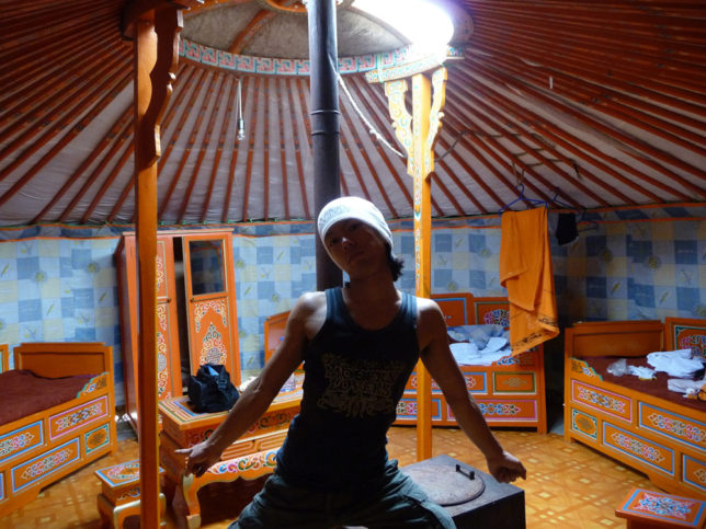 出る前カップルを迎えに行った時、ゲルの中が少し見えたけど自分の所とは違って2段ベッドやった。欧米人もいた。