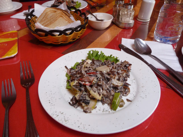 ゲルに帰ってきてランチ。チキンのスープが美味しかった。キノコがあんまり…今までの中ではハズレやったかな。
