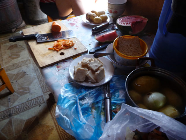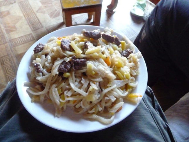 料理の下準備?ができたと呼ばれて、そこからさっきの野菜焼いて、肉焼いて、麺入れて、水入れて、小麦粉入れて、味付けは塩コショウで焼うどんみたいなんができた。美味しかった!(でも今考えたら塩コショウだけ旨いわけないよな?忘れた。。)
