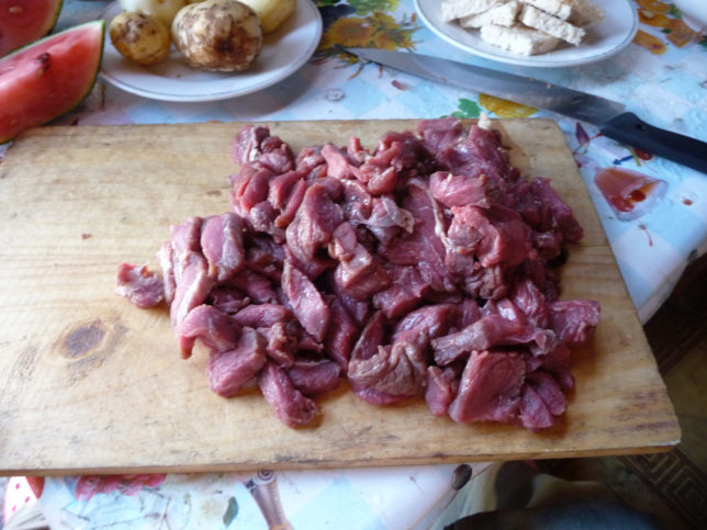 それから肉もカット。切ってたらもっと小さくと言われた。