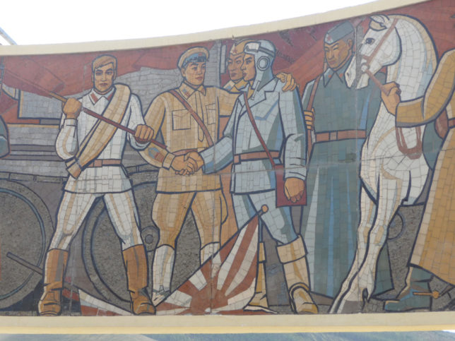 旭日旗が踏まれてる絵を見て、ああモンゴルにとって日本は敵国やったんかと気づかされる。モンゴルとロシアが協力して、日本やドイツを破ったという戦勝記念碑らしい。