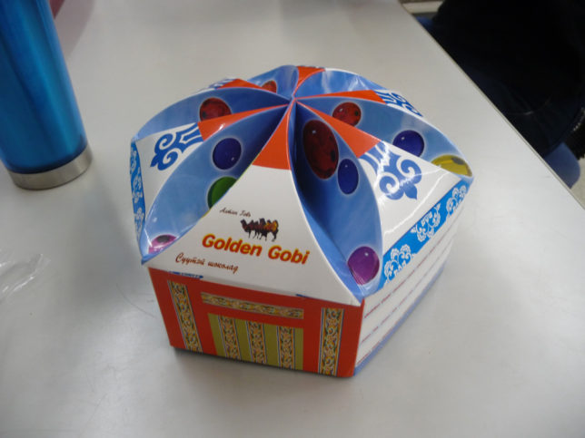 それからクルマに乗ってウランバートルへ向かう。ロシア大統領が来てるらしく渋滞やからルート変えて移動した。ザハでチョコレート買いまくった。ゲルの形の入れ物がすごい気に入ったけど1個しかなかった。残念やったけど1個ゲットできて良かった。