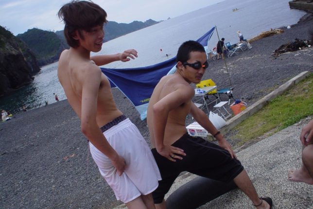 みんなと下関駅のケンタッキーの前ですんなり合流。クルマでこんなとこまで運転してきて、みんな大人やなーって思った。そこから電車で来た道をクルマで若干逆走しつつ、日本海でみんなで泳いで遊んだ。