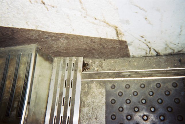 駅の歩道橋にカニがいた。