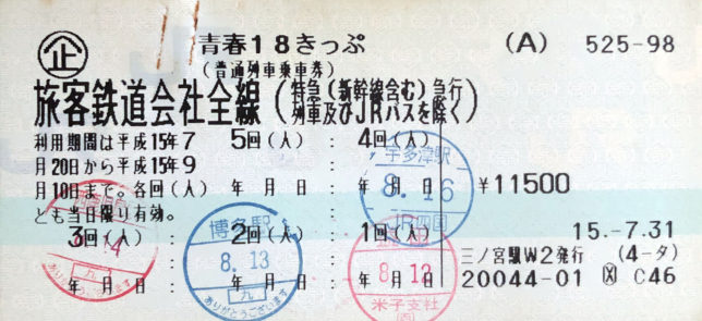 青春18切符2枚目は島根県益田からスタート。