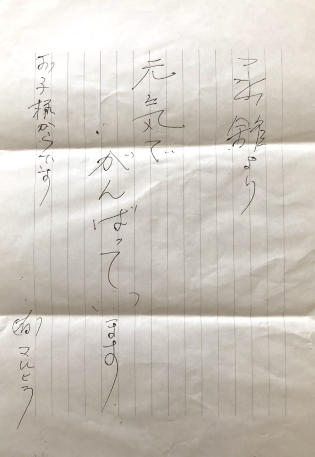 一番上のカニ持った写真に写ってるオバちゃんが、家に送ったカニの中に手紙を添えてくれてた!あったかいなぁ。写真とこの手紙を持って、このオバちゃんに会いに行きたいなぁ。
